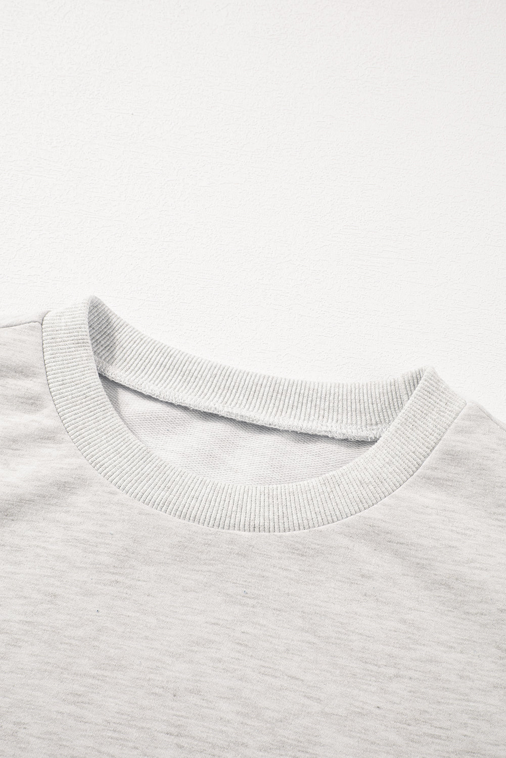 Rhinestone Pearl Detail Round Neck Puff Sleeve Top